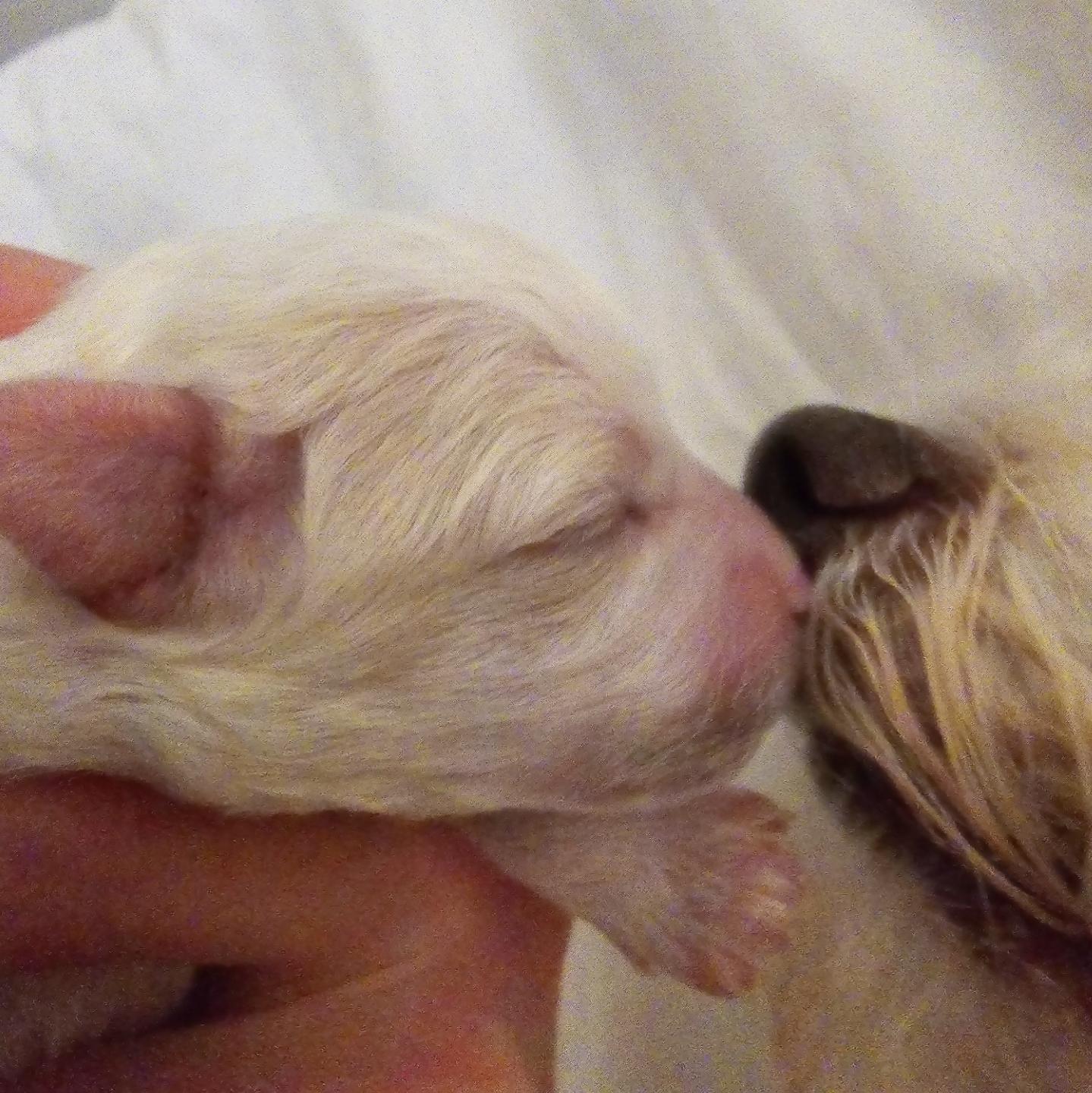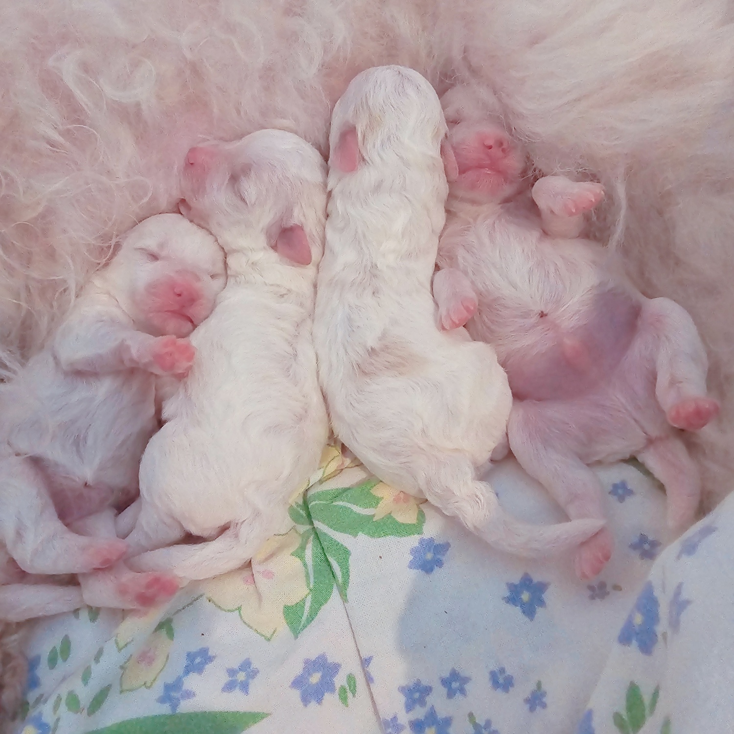 Tosca synnytti torstaina 12.9. illalla neljä tervettä ja energistä pentua, yhden komean uroksen ja kolme sulotarta. Synnytys sujui uskomattoman helposti ja nopeasti. Neljässä tunnissa kaikki oli ohi, ja pennut maailmassa. Tämä on sikälikin erikoista, että synnytys oli Toscan ensimmäinen. Nyt narttu on erinomainen äiti, joka mustasukkaisesti vahtii pentujaan, ei anna koskea niihin eikä suostu poistumaan pentulaatikosta.